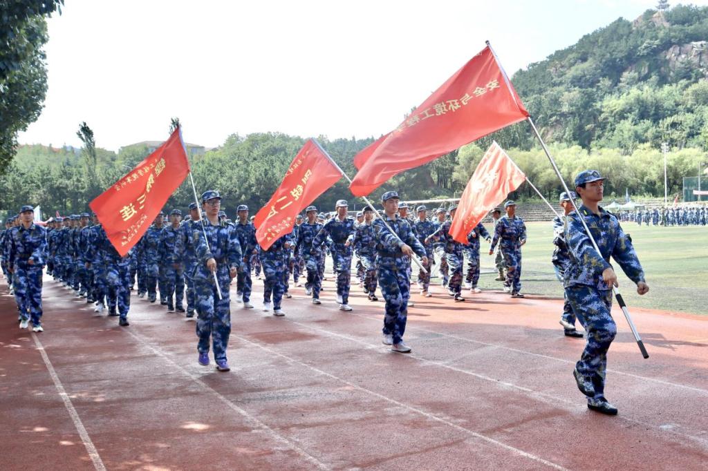 随着教官一声令下,三个连队、三百余名安全学子迅速响应,以挺拔的军姿、整齐的队列接受检阅。齐步走步伐稳健,正步走落地有声,跑步前进气势如虹;立定转体干净利落,敬礼动作标准有力;声声口号响彻操场,炯炯目光坚定自信,每一个细节都凝聚着刻苦训练的汗水,彰显出集体的默契与青春的昂扬。王君松认真观摩了分列式演示,对同学们在训练中展现出的高度协同和顽强意志表示高度赞扬。