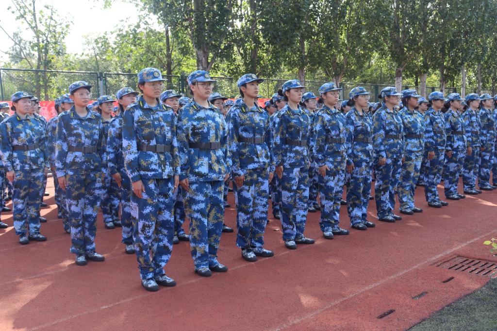 “调整军姿!”口令一下,全体同学迅速响应。收腹、挺胸、抬头、身体前倾……动作干净利落,眼神毅然坚定。阳光掠过帽檐,汗水自眉间滑落,但没有人擦拭,更无人松懈。他们双臂紧贴裤缝,手指绷直,如钢钉般屹立于训练场,展现出军人般的顽强作风。