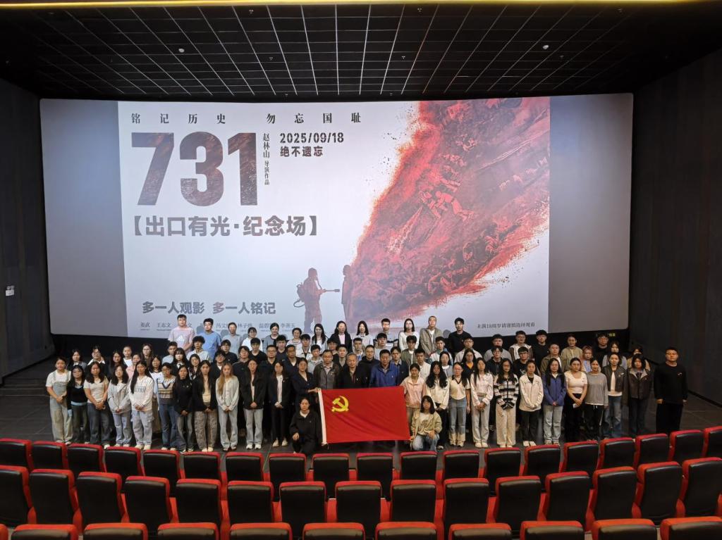 为纪念中国人民抗日战争暨世界反法西斯战争胜利 80 周年,进一步激发师生的爱国主义情怀,弘扬伟大抗战精神,9月19日,安全学院党委组织开展爱国主义观影主题党日活动。学院100余名师生共同走进影院,观看重大历史题材影片《731》。