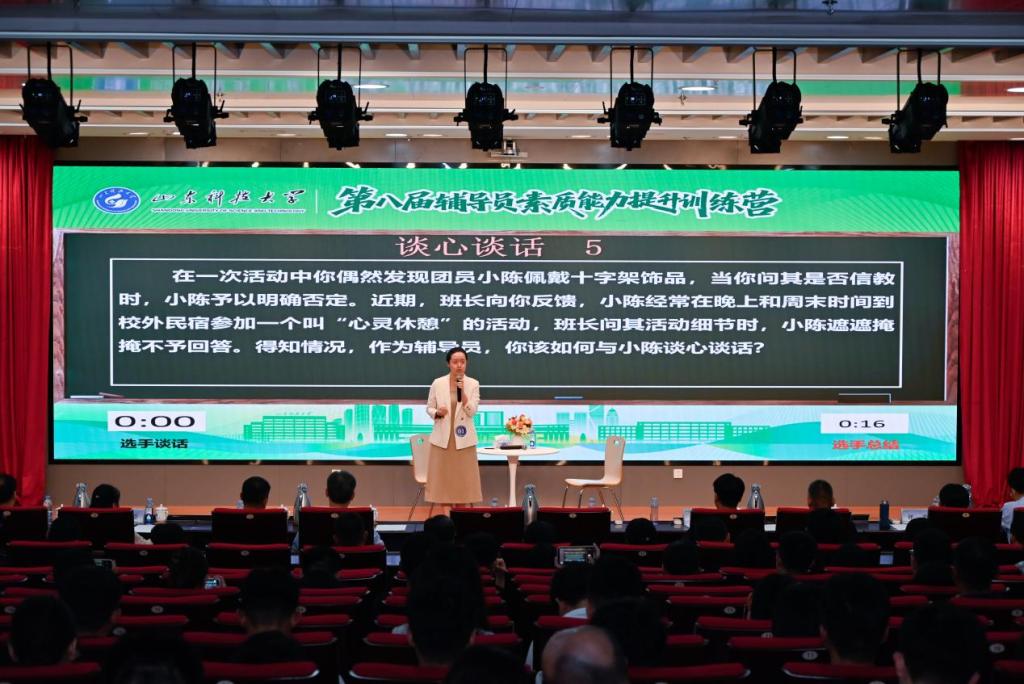近日,在我校举办的“青岛银行杯”第八届辅导员素质能力提升训练营中,我院辅导员冷冬阳发挥出色,经过多轮激烈比拼,最终在全校200余名参赛辅导员中脱颖而出,以总排名第三的成绩荣获二等奖。