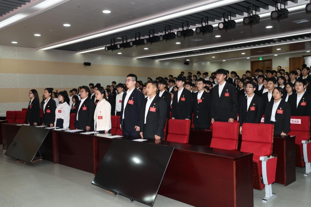 共青团山东科技大学安全与环境工程学院第一次代表大会正式开幕,全场起立,奏唱中华人民共和国国歌。