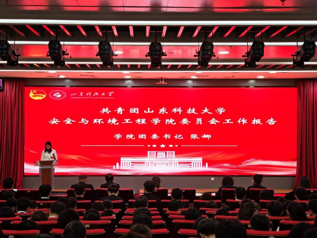 张娜代表共青团山东科技大学安全与环境工程学院委员会向大会作《勇担使命立前沿激扬青春铸一流为实现建设工科主导、特色鲜明的高水平应用研究型大学目标贡献青春力量》工作报告。报告分为两个部分:一是全面回顾和总结安全与环境工程学院共青团近年来工作情况;二是确定今后安全与环境工程学院共青团的工作规划与展望。