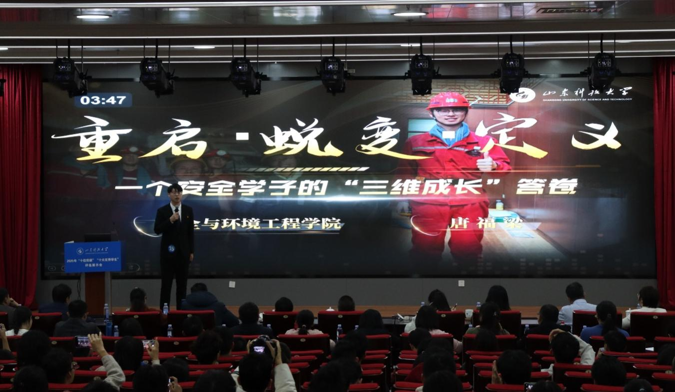 12月2日,山东科技大学2025年度“十佳班级”“十大优秀学生”评选活动在图书信息中心求新讲堂举行。安全学院环境工程2022级4班获“十佳班级”称号,安全工程2022级5班唐福梁荣获“十大优秀学生”荣誉称号。