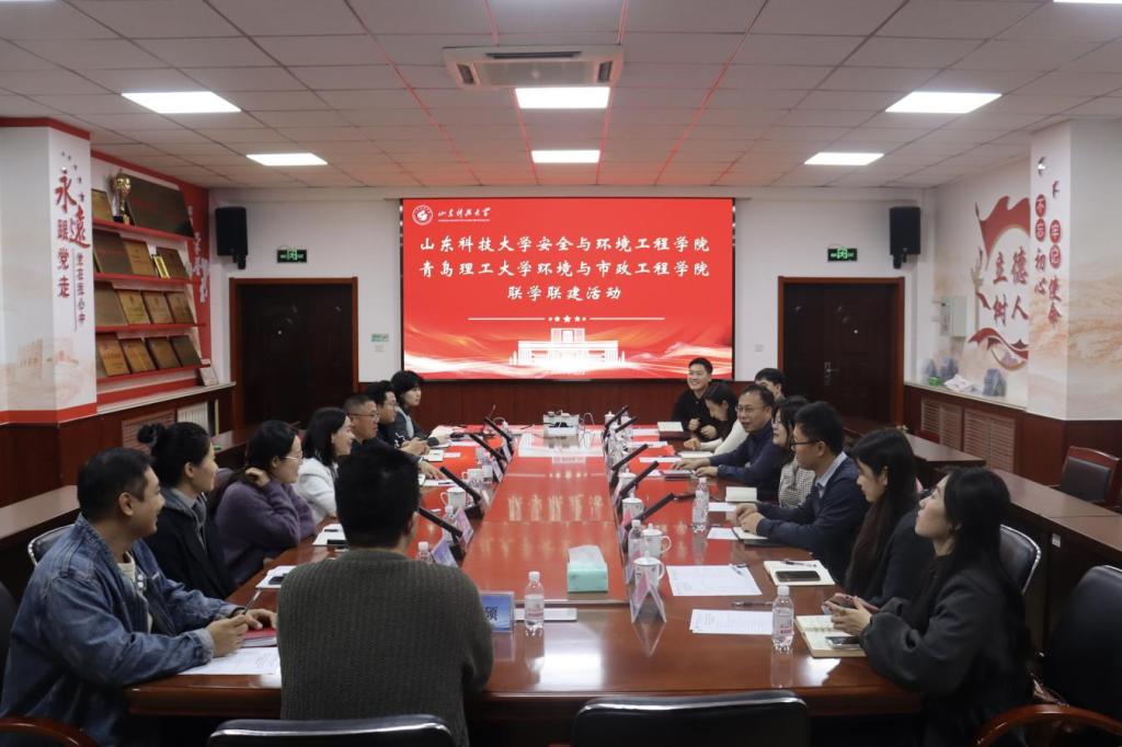 12月19日,山东科技大学安全与环境工程学院与青岛理工大学环境与市政工程学院联学联建活动在J9-223会议室顺利举行。青岛理工大学环境与市政工程学院党委副书记兼副院长隋学智、学工办主任兼团委书记花会娟一行8人,学院党委副书记兼副院长王建友、学工办主任兼团委书记张娜及全体辅导员共同参会。