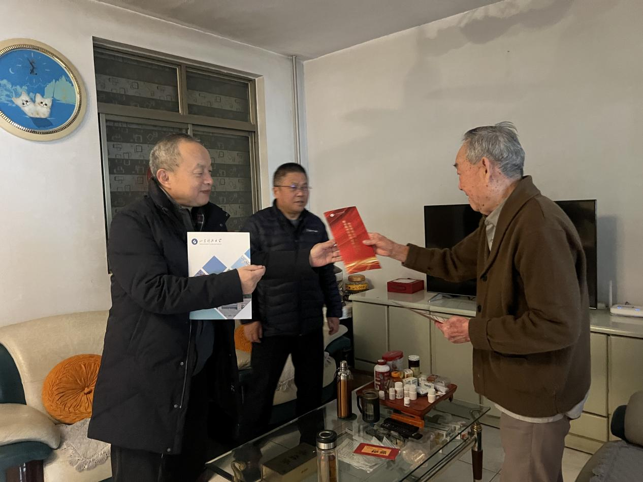 走访过程中,张恩生与老教师们促膝长谈,关切询问老干部们的身体状况和日常生活起居,详细介绍了学校及学院在过去一年里取得的发展成就与未来规划,并诚挚听取他们对学校未来发展的宝贵意见和建议。张恩生表示,学院的发展成就离不开老一辈学院教师打下的坚实基础和长期以来的关心支持,学院将始终铭记老同志们的辛勤付出。同时,还就学院校史馆筹建工作的相关资料搜集情况向老干部们进行了请教和传达,希望老教师们能继续发挥余热,为挖掘和整理校史贡献宝贵经验和建议。老教师们对学校的关怀倍感温暖,为学校取得的辉煌成就由衷欣慰,纷纷表示将一如既往地关注学校发展。