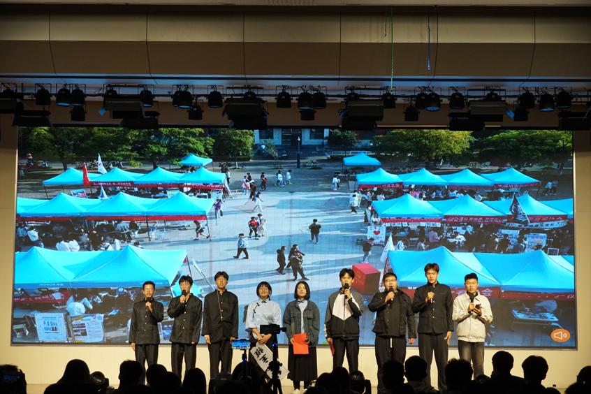 本次比赛共有十支队伍参加,内容涉及思政教育、校园生活、人际关系、自我认知等主题。环境工程2024-3班《且看今朝起鲲鹏》和安全工程2024-5班《走下去》以震撼人心的红色故事为主题,激励着当代人传承红色基因,砥砺前行;安全工程2024-2班《视角之变,心悟成长》以奇巧新颖的题材,佐以令人捧腹的搞笑表演,鲜活呈现大学人际关系众生相;职业卫生工程2024级《时光的涟漪,记忆碎片》凭借其独特且灵动的叙事手法,巧妙地引导观众在悲观与乐观的情绪间穿梭,使人们得以深刻领略两种截然不同的情感境界。同学们的精彩表演引起观众的阵阵掌声。随着大艺团演唱的《因为爱情》,比赛渐渐进入尾声。赛后,评委为获奖选手们颁奖并合影留念。