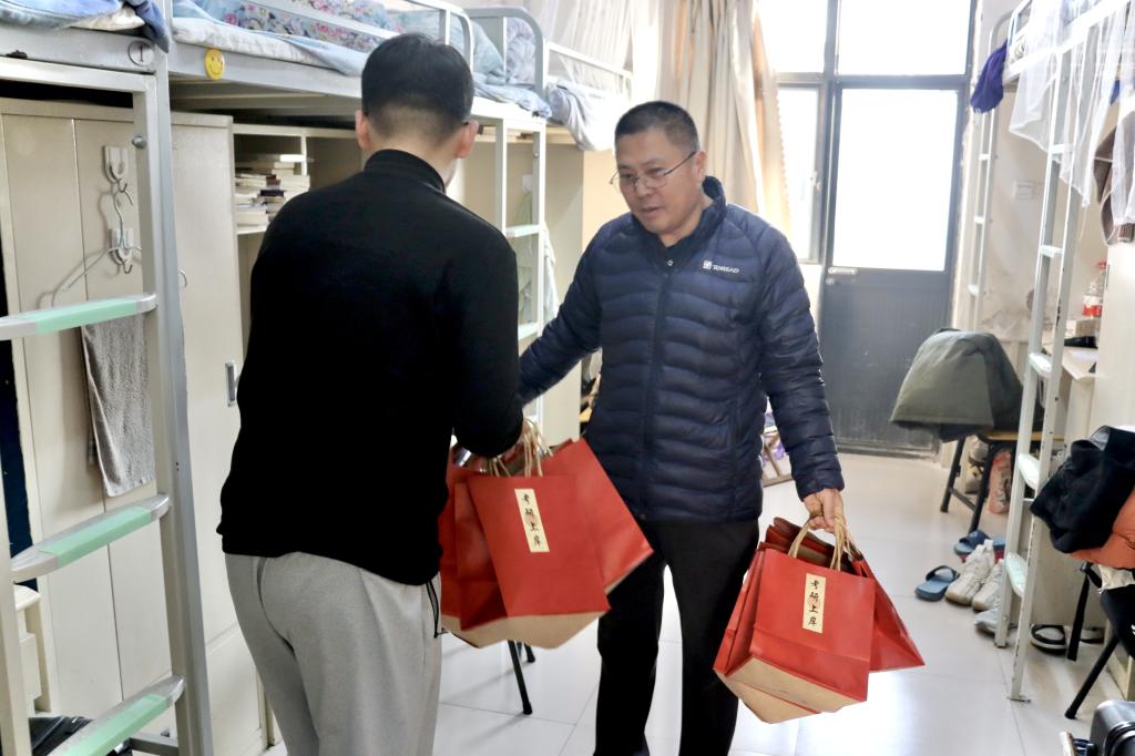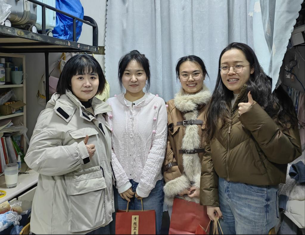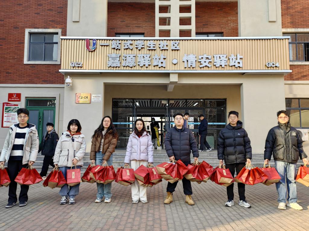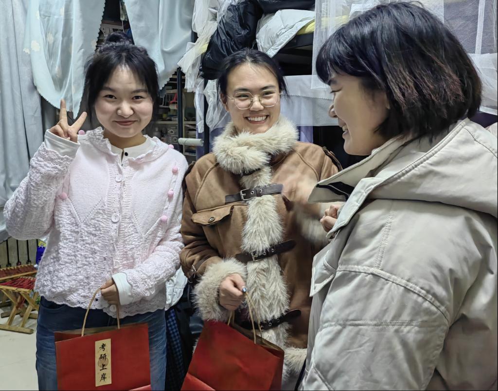王建友同考研学子面对面交流,心连心关怀,悉心叮嘱同学们在备考过程中要注意调节情绪,避免过度紧张和身心疲惫,保持积极乐观的心态,以饱满的精神状态迎最后的挑战。张娜鼓励同学们要顶住压力、全力冲刺、一战上岸,遇到问题困惑可以随时找老师们沟通,学院永远是同学们坚实的后盾。学院老师及学弟学妹还为考研学子们亲手准备了“考研大礼包”,其中包括寓意美好的橙子,预祝同学们能够一战“橙”硕;精美的考试文具,为同学们考试保驾护航;温馨的祝福贺卡,虽身处寒冬但句句温暖人心。