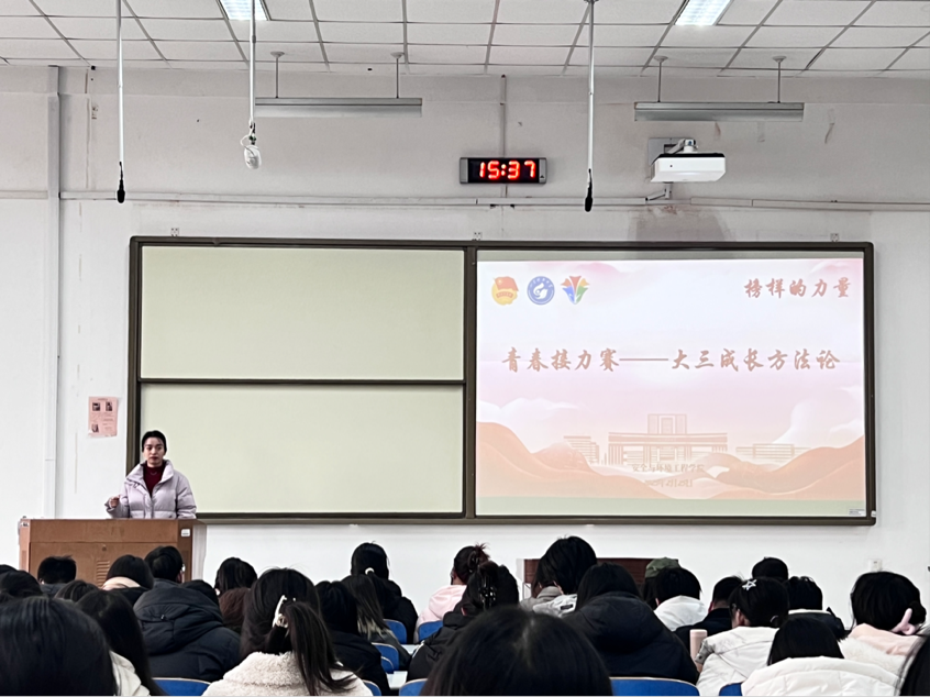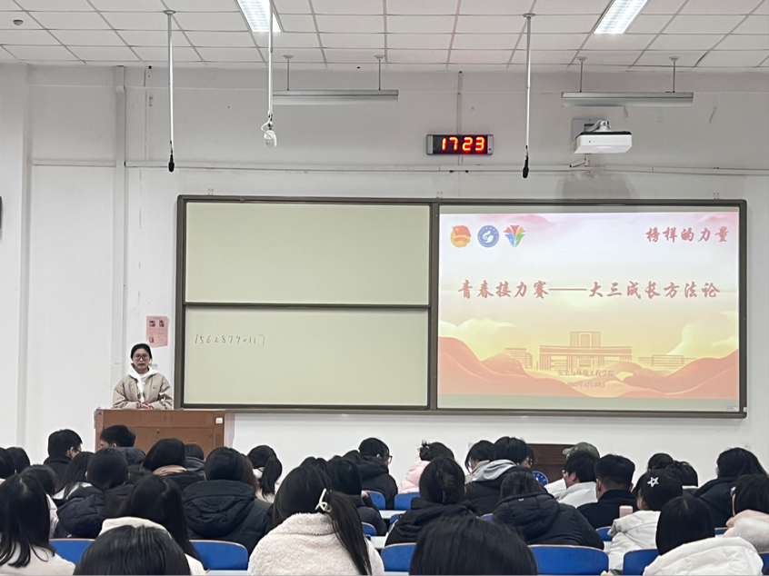 为助力大三学子生涯规划,打造“传帮带”育人体系,发挥榜样引领作用,2月25日,安全学院召开"青春接力赛——大三成长方法论"新学期全体学生会议。会议由学院团委书记张娜作专题指导,特邀5名学院优秀学生代表分享成长经验,2022级全体学生参与学习。