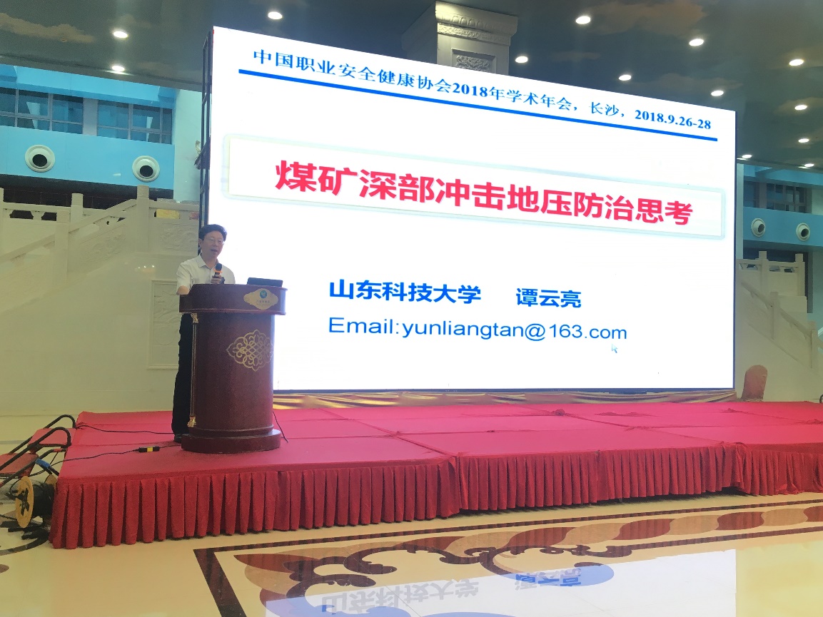 9月27日至28日,中国职业安全健康协会2018年学术年会暨2017年度科学技术奖颁奖大会在长沙召开。本次大会由中国职业安全健康协会主办,来自全国各地企事业单位、大专院校的参会注册人数达到210余人,山东科技大学矿业与安全工程学院谭云亮教授、胡善超老师参加了会议。
