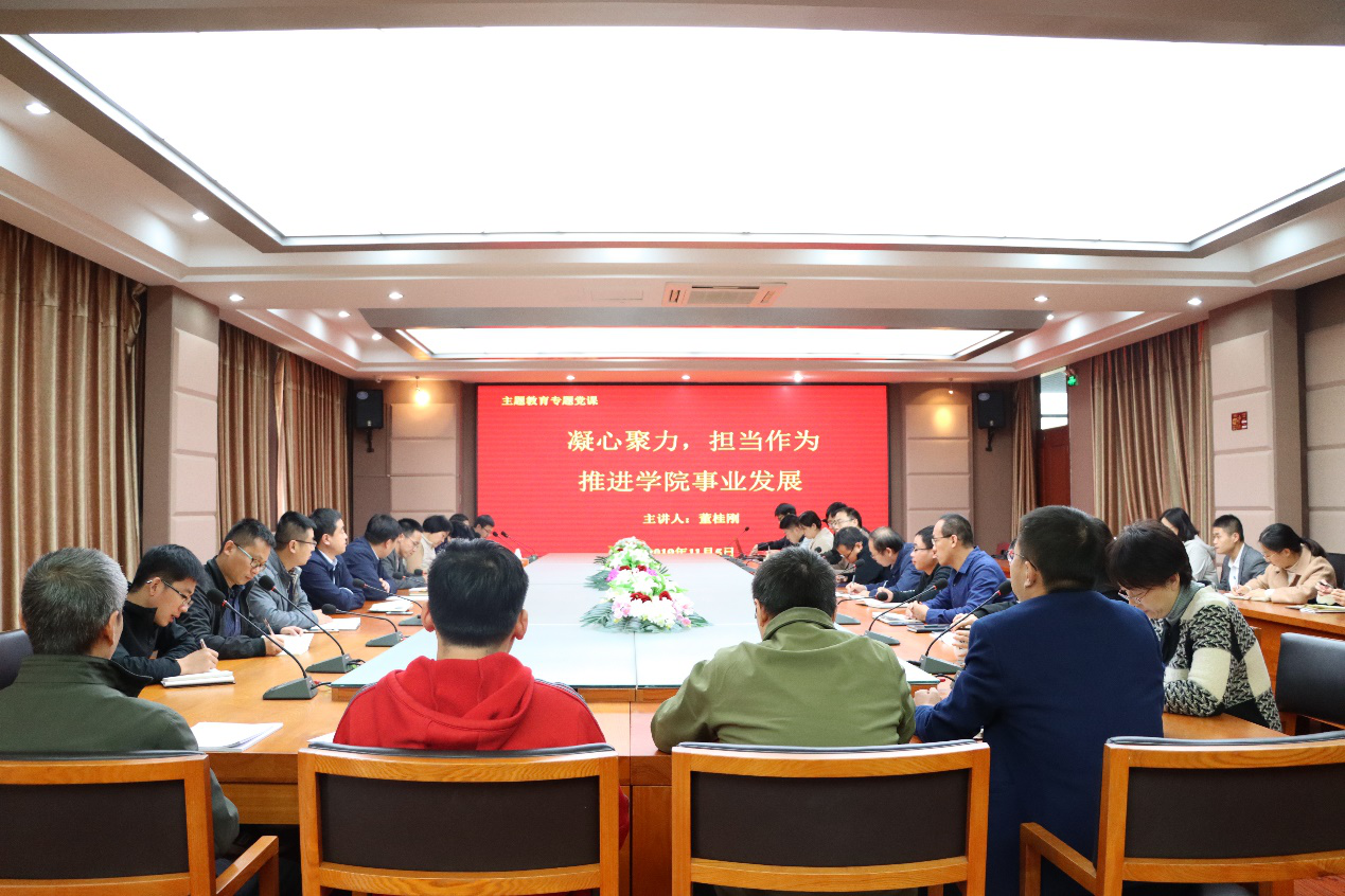 为高标准严要求扎实推进“不忘初心、牢记使命”主题教育深入开展,11月5日,矿业学院党委书记董桂刚在J4-322为教工党员讲授“凝心聚力、担当作为,推进学院事业发展”主题教育党课。学院各支部书记、党员代表聆听了党课。
