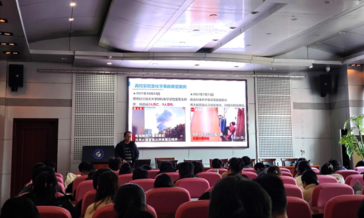 赵吉园老师以实验室开放共享管理为切入点,详细讲解了实验室设备的开放共享情况,解释了《实验室设备有偿使用与考核实施细则》具体内容,介绍了当前实验室设备开放共享任务完成情况。朱恒忠老师以“安全是态度,理智来引导,习惯渐养成”为主题,从高校实验室化学试剂安全事故典型案例、实验室化学试剂闭环管理流程、实验室化学试剂常见安全问题、实验室管控危化品审批流程、实验室化学试剂管理举措五个方面,进行了详细讲解,旨在让学生严格遵守规章制度,增强自我防护意识。