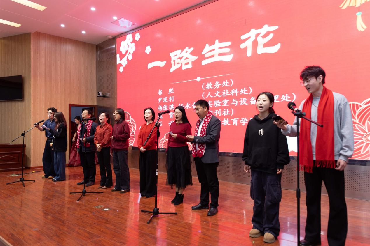 “二月天杨柳醉春烟,三月三来山青草漫漫,最美是人间四月的天,一江春水绿如蓝...”联欢会在研究生院演带来的一曲悠扬动人的《上春山》中拉开帷幕。