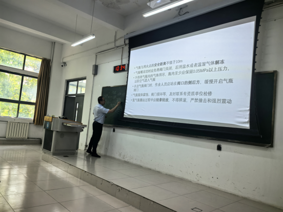 演练前,首先开展了“实验室氢气使用规范及应急处置”主题安全教育培训。化学与生物工程学院实验中心主任郭清彬围绕氢气储存规范、实验操作流程、应急预案启动要点及紧急疏散路线规划等核心内容展开讲解,结合典型事故案例演示化学品安全事故自救技巧。储能学院副院长杨鑫着重强调气体使用规范的重要性,要求全体人员以“零事故”为目标筑牢安全意识防线。