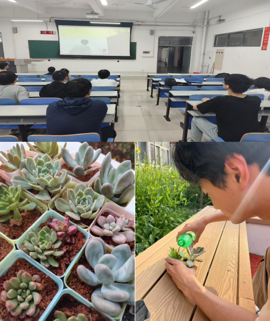 5月17 日,储能技术学院承办了“焦绿不焦虑"的绿植培育活动。此次活动是第二十一届大学生心理健康教育月系列活动之一,旨在依托校园优美的自然环境,以“自然疗愈,心灵绽放"为主题,本次活动分为两个阶段其一是绿植培育,在工作人员的指导下挑选自己喜欢的植物进行种植,其二是观看电影《扬善洲》在工作人员的组织下进行观影,本系列活动获得了百余位同学的积极参与,通过种植,手工,观影三位一体的沉浸式体验,引导参与的同学感受生命成长的力量,在自然与艺术的交融中实现自我察觉与情绪疏解。