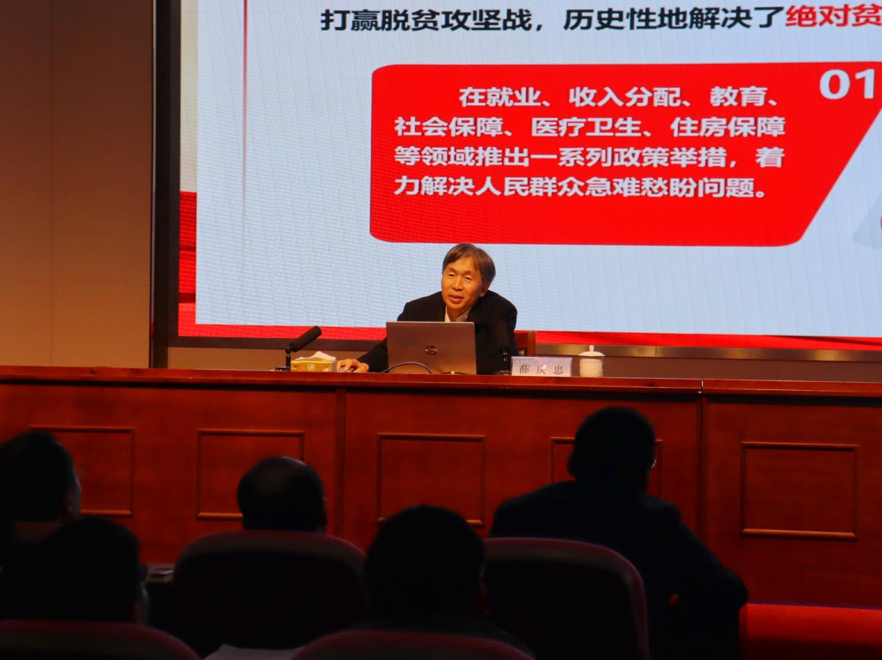 12月16日下午,校党委常委、副校长薛庆忠为财务处、储能学院、材料学院、交通学院师生代表宣讲党的二十届四中全会精神。宣讲旨在推动全会精神深入校园,引导师生准确把握核心要义,切实把思想和行动统一到中央决策部署上来。