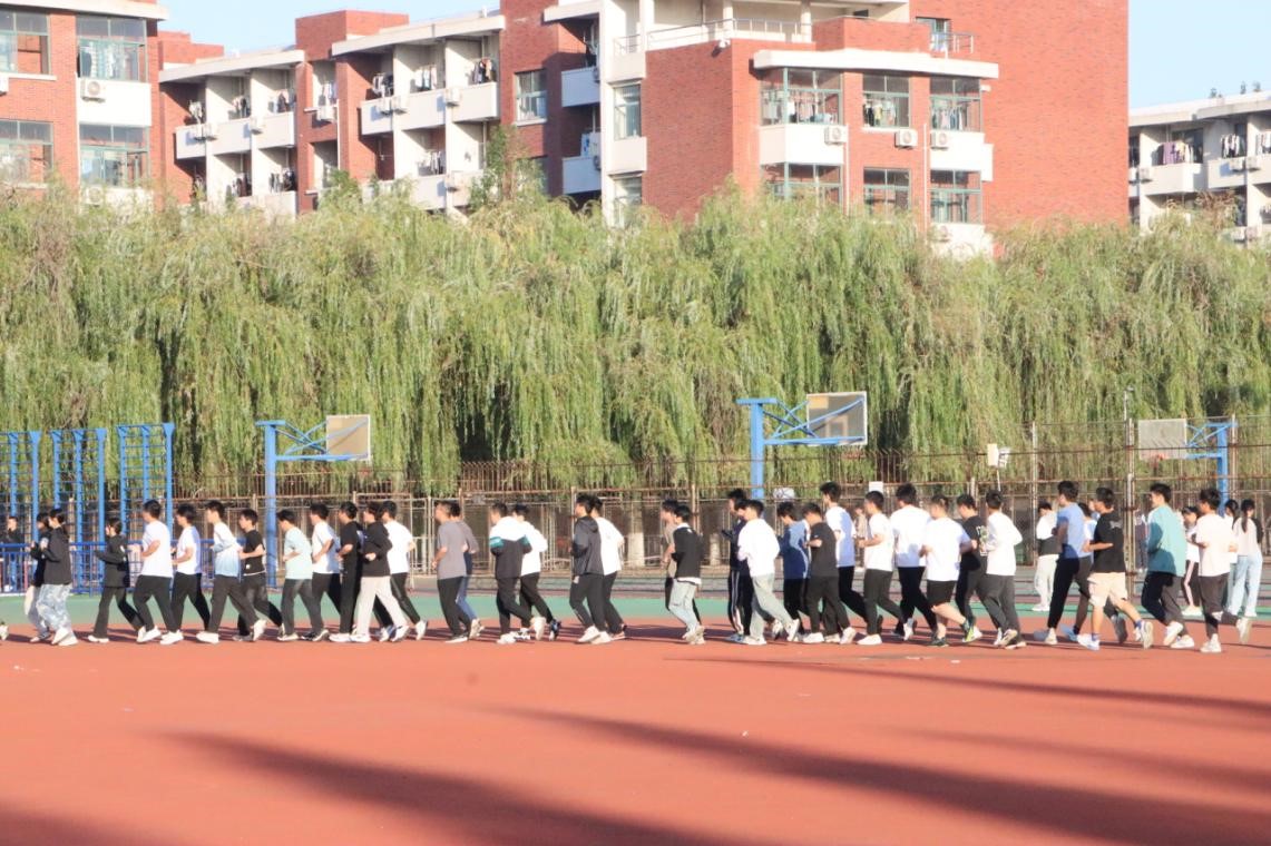 随着一声令下,储能新生们整齐列队,开始先进行热身运动,充分准备后大家按照预定路线开始绕场奔跑,跑操过程中同学们虽然满脸通红,汗水浸湿衣背,但眼中始终闪烁着青春的活力,空气中弥漫着一股昂扬向上的拼搏气息。新生辅导员孟凡宝老师和同学们一起出操,勉励同学们要充分利用宝贵的清晨时光,强身健体,培养良好的生活习惯,为今后的大学生活打下坚实的身体基础。(通讯员:刘俊利)