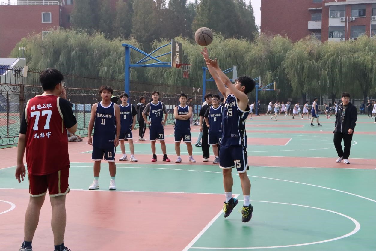比赛开始,对战双方展开激烈对抗,传球、突破、上篮动作潇洒,展现了储能学子的良好的精神面貌和体育竞技精神。哨声响起,比赛上半场结束,双方比分差距较大。下半场落后队伍奋起直追,不惧挑战,但终因实力差距未能翻盘。研究生2024级和能源与动力工程2024级2班分别战胜对手取得首场胜利。